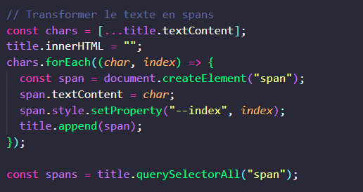 En JavaScript on récupere le contenu texte du H1, et on le découpe en une