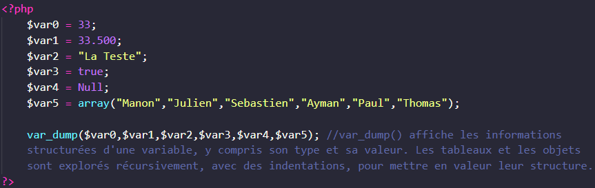 Les differentes variables :